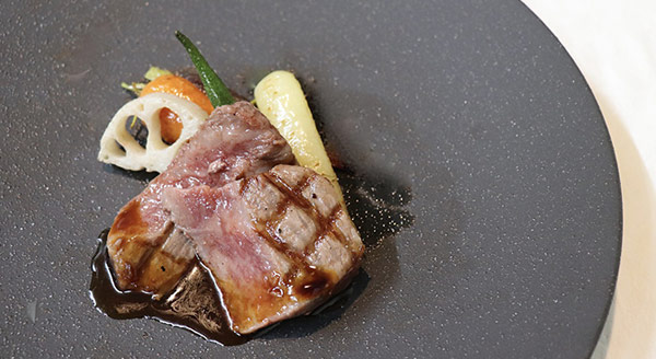 ディナーコースのメインは、ミロワール自慢の一皿「最上級A5ランク黒毛和牛ステーキ」のフレンチフルコースでございます。