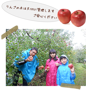 ご家族やお仲間とりんごの木のオーナーとなり、りんご狩りをお楽しみいただけます。